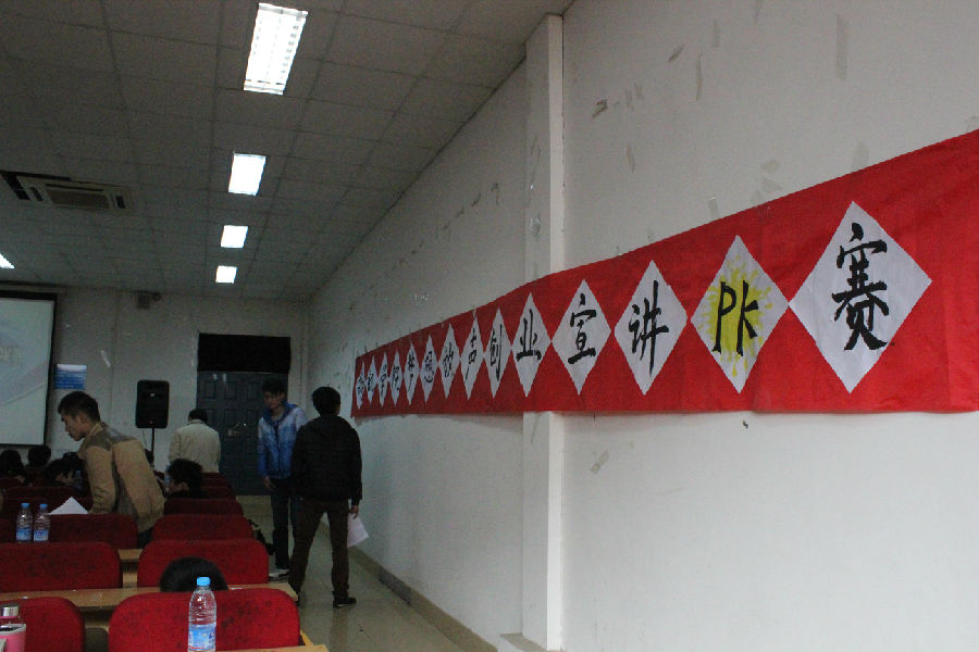 2014年3月13日 星期四 下午4时,“梦想放声”创业宣讲PK赛活动在湖北第二师范学院报告厅4正式拉开帷幕,会上我们请了党总支书记王志民、党总支副书记汪平、副院长肖飞、学工办主任蒋作栋及五个团队指导老师等领导参与大赛评审,百人评审团由学生干部担任。
