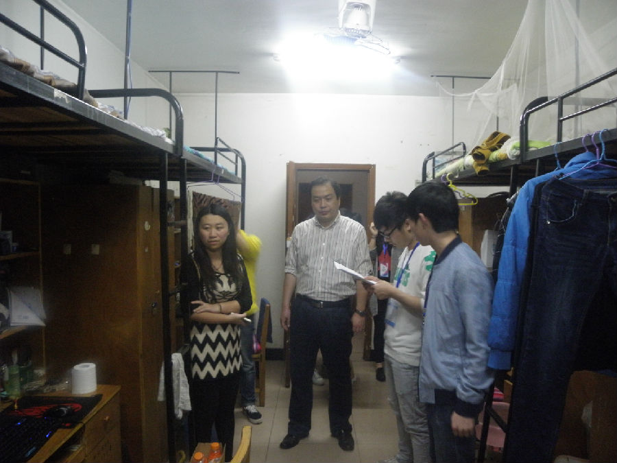 此次查寝以西六、西八、西九、中二、中九五栋学生寝室为重点,以系为单位分组进行检查。学生干部们整装待发,情绪饱满,查寝时做到了文明礼貌,真诚待人,汪书记热心的与学生们交流,关心学生生活。总体上,大部分寝室卫生方面良好,但是在检查过程中也发现了问题:西六102寝室违反学校规定使用大功率吹风机。但在问题被指出后,同学们都悉心听取,上交了吹风机,并保证认真改正。