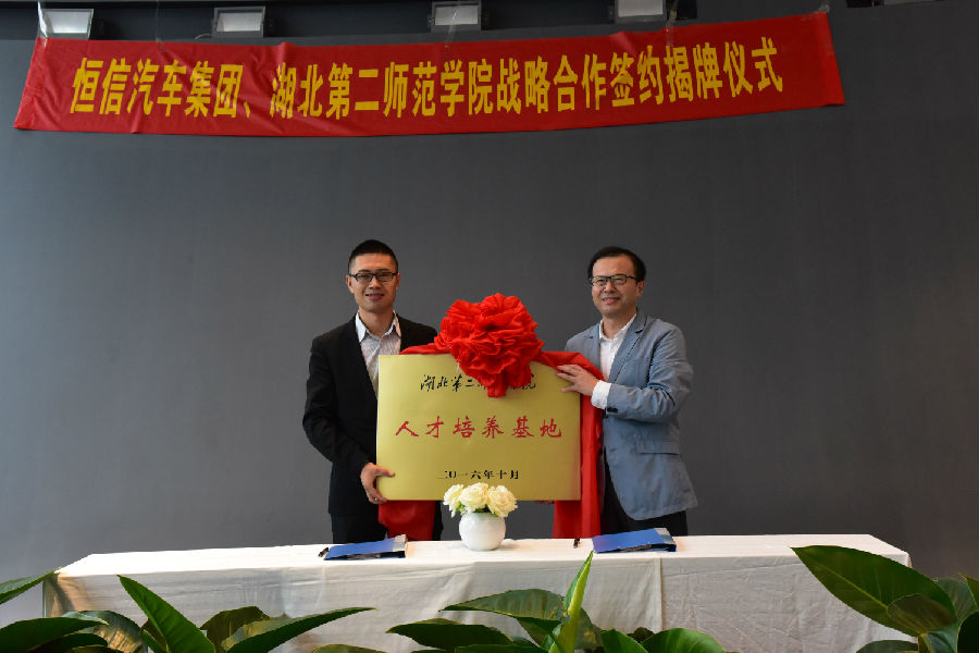 本网讯(学通社记者 董义昆 见习记者 陈丽君)10月20日上午,我校物理与机电工程学院和恒信汽车集团合作签约揭牌仪式在武汉恒信奥诚奥迪4s店举行。我校校长胡仲军,副校长夏力,教务处处长田恒平、常务副处长李尚仁、物机学院院长肖明、党总支书记王志民等出席。