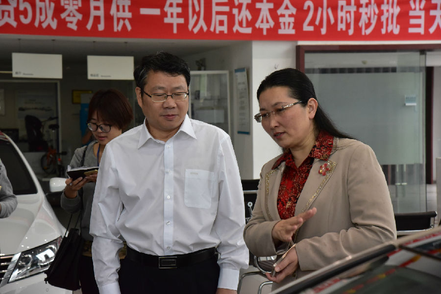 签约仪式开始前,胡仲军一行与恒信集团负责人一同参观汽车展览园区。在大众、奥迪、宝马等汽车展览区,胡仲军仔细询问了不同种类汽车的性能、价格、型号。