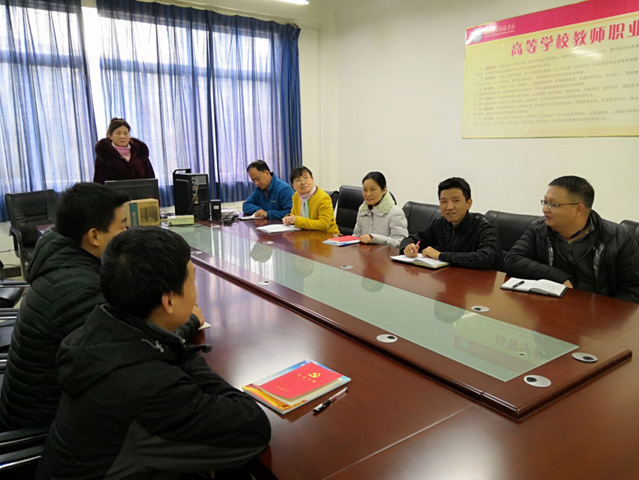 会议第四项由王秋珍老师带领大家学习了《新时代高校教师职业行为十项准则》精神和《湖北第二师范学院建立健全师德长效机制实施办法》、《湖北第二师范学院基层党建工作述职评议考核试行办法》等相关文件精神。她表示全体党员教师要坚持师德为上,以立德树人为出发点和立足点,与会党员教师要熟知《湖北第二师范学院基层党建工作述职评议考核试行办法》过程实施和结果应用,并对照梳理、总结2018年党建工作,为年度党建“述评考”作准备。