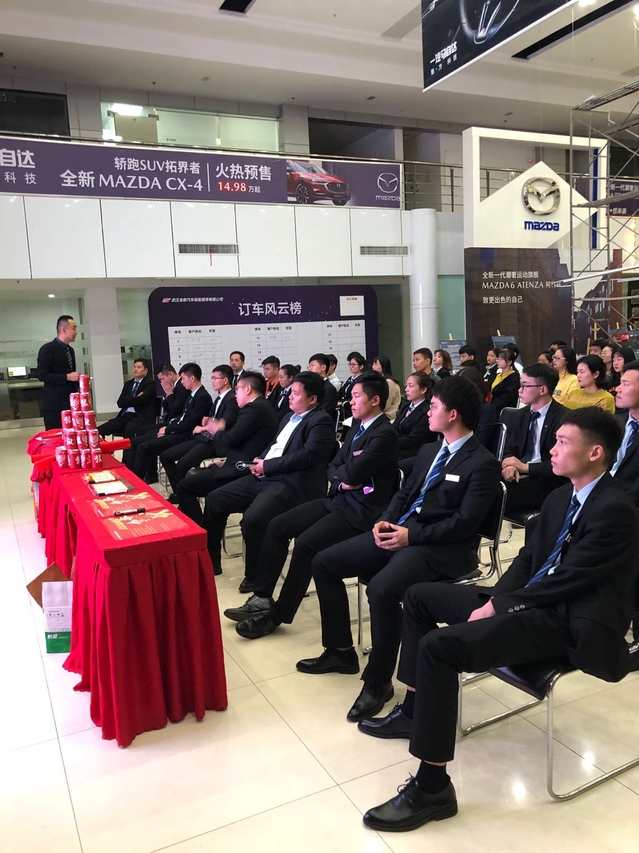 此次实训汽车厂家和经销商都给予了高度重视,东风公司和一汽马自达公司派出了厂家的培训讲师亲自对学生进行汽车产品、汽车服务和营销知识的培训;龙泰公司派出了经理和内训师对学生进行了培训指导及反复演练,还为每位学生配备了企业导师;学院也配备了实训老师全程参与。经过此次培训的学生将参加11月12日开始的武汉国际车展,接受实战的考验。