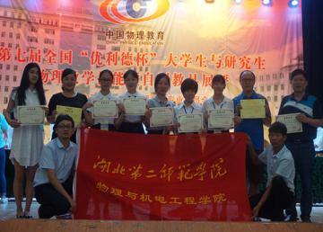 我校在全国第七届“优利德杯”大学生与研究物理教学技能暨自制教具与设计实验大赛中获教学技能展评一、二等奖,获自制教具与设计实验一等奖,我校被组委会授予“优秀团体奖”