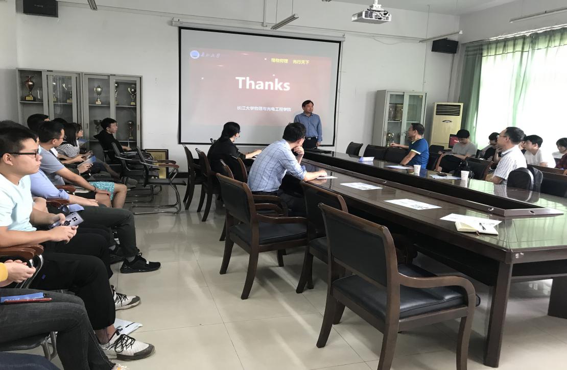 9月28日上午,长江大学物理与光电工程学院总支书记杨鑫、教授张华峰来我院考察交流,院长戴伟在二楼会见来宾,学院三位研究生联合培养硕士生导师谈伟伟、李睿、来小禹和40多名物理学、材料物理专业学生参加会见。