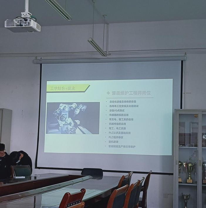 首先,负责人黄先生针对当前就业形势向大家介绍智睿锡尔智能科技公司的成绩与未来发展前景,该公司经营产品包括设备生产制造技术服务支持技术外包和校企实验室。该公司有着卓越,创新,合作的企业理念和清晰的目标通过对资源的累计以及对员工的储备,能够为客户做到更快捷的响应方案,更完善的解决方案,更具性价比的服务方案接着,黄先生向大家举例该公司的售后维护工程师岗位主要工作内容,包括传感器的实际应用整机联调钳工实操等等,并用图片向大家展示工作场景,以图表形式直观地表现出该公司一直以来自主引导,包容开放的姿态,向全社会吸纳人才;最后,黄先生向大家介绍就业福利,同学们都听得很专注,之后现场学生积极向黄先生了解一些细节问题。宣讲会上场面热烈,掌声不断。