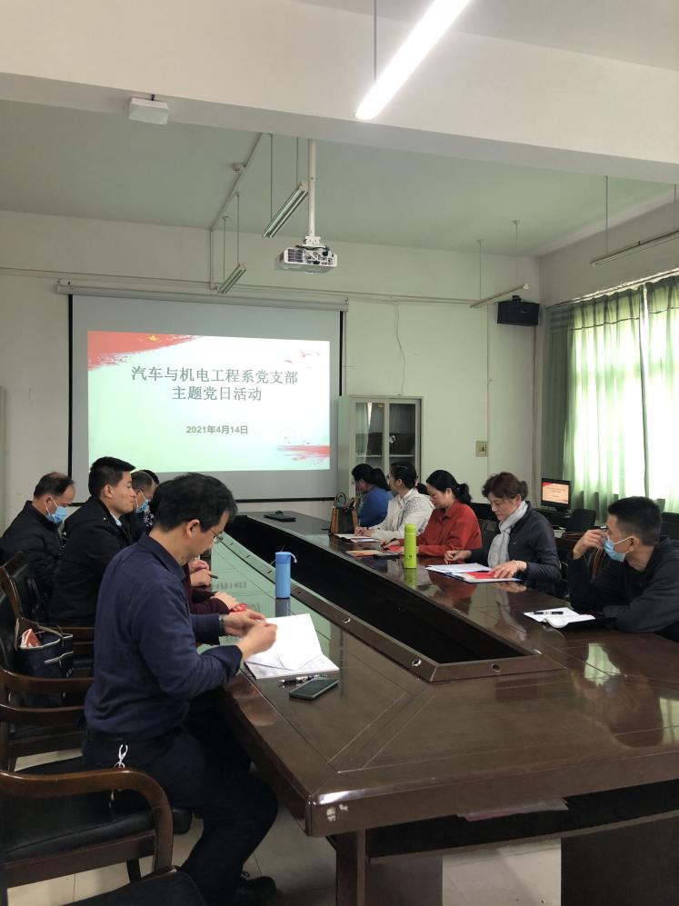 (通讯员 伍家梅)4月14日中午,汽车与机电工程系党支部全体党员在学院二楼党员活动室开展4月主题党日的集中政治学习与讨论。支部支委委员提前召开了支委会,按照上级党组织的要求就4月主题党日活动进行了安排,活动主题为“学党史、悟思想、办实事、开新局”。