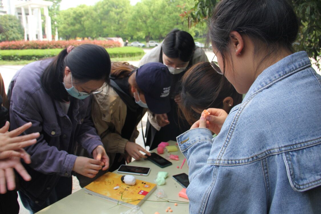本网讯(通讯员:魏文霜 摄影:刘新义) 为了舒缓大学生内心的情感,让无形的情感有形的展现出来,2021年4月15日下午,物机学院心星导航协会在行知广场上开展了“以手塑形,行由心生”主题活动。