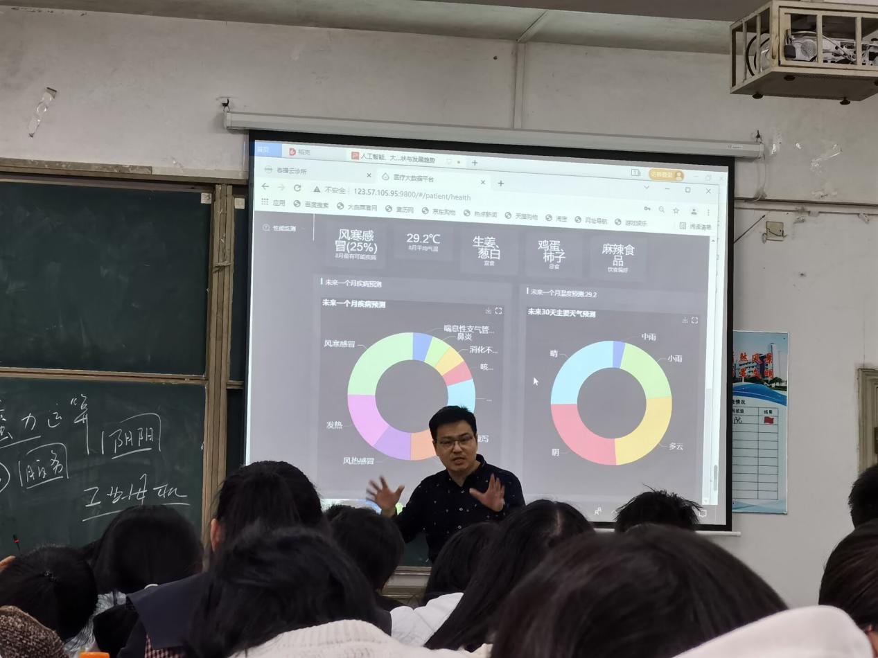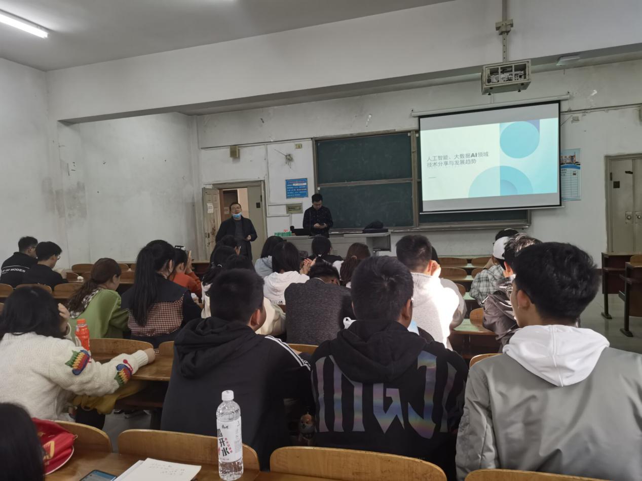 随后,学院企业导师黄传松以“人工智能,大数据,AI领域技术分享与发展趋势”为主题展开演讲。对人工智能的基本概述和人工智能的发展现状做重点介绍。利用通俗易懂的例子将抽象的概念具体化,向同学们讲述人工智能的由来以及发展过程。此外,他还提到目前国内软件开发技术远远落后欧美,人工智能也被提升到了国家战略高度。希望同学们努力学习,为此出一份力。最后,黄传松带领到会的全部的同学体验了由春播万象推出的“医生邀请您测体质”小程序,从中感受到软件开发带给人们生活上的便利。