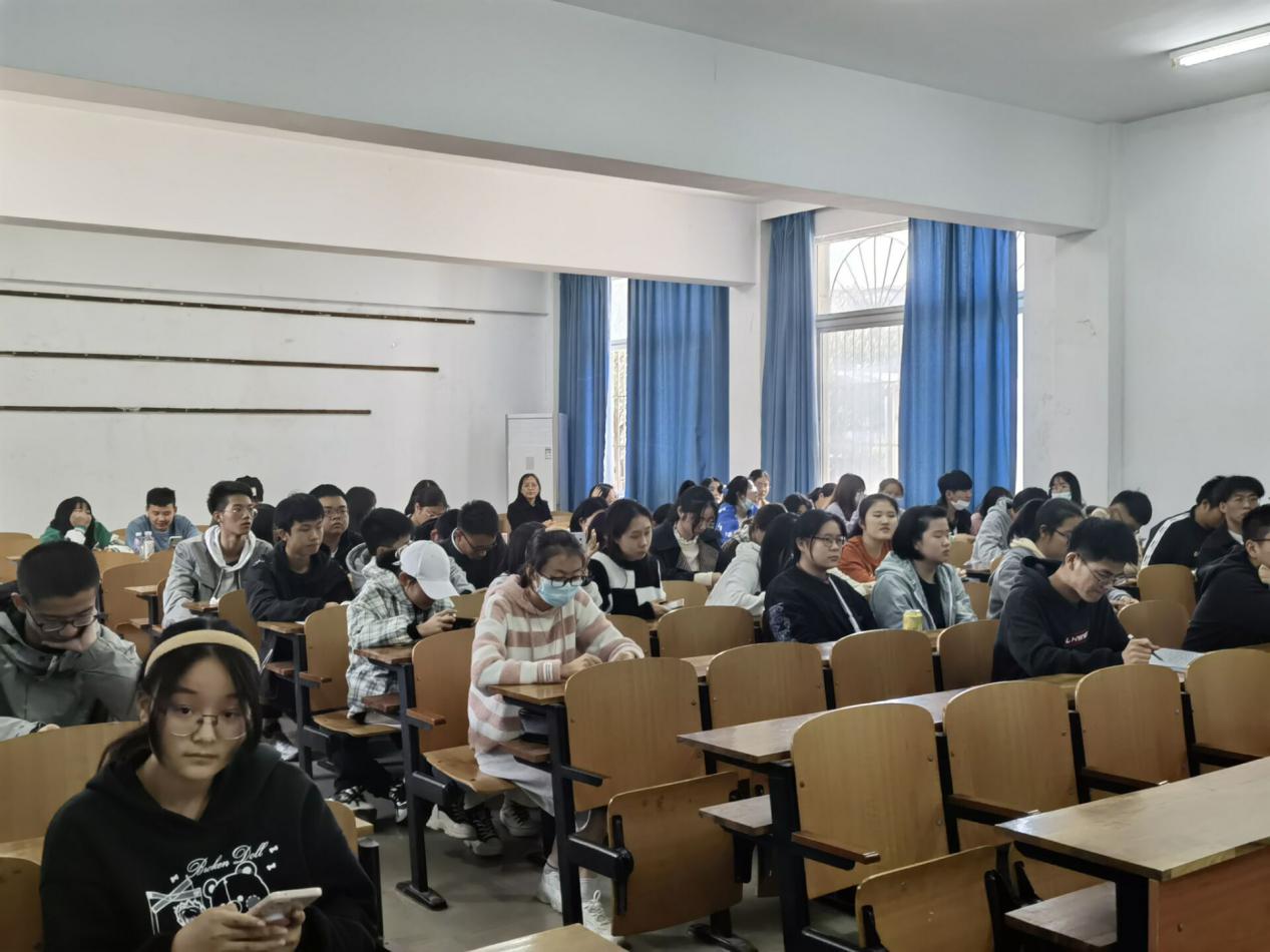 本网讯(通讯员 刘子涵 摄影 刘子涵)11月14日上午9点。物理与机电工程学院(以下简称:物机学院)光学与电子信息系在10号楼102教室开展师友学友讲堂校友导学系列讲座(新生专业思想教育第三次教学活动)。本次讲座邀请了春播万象(北京)科技有限公司的副总经理,软件开发架构师、工程师,学院聘请的企业导师黄传松,13电子信息科学与技术专业校友,武汉联影医疗科技有限公司软件开发工程师李扬,12电子信息与科学技术专业校友,华为软件开发工程师王俊。光学与电子信息系系主任王怀兴老师,光电信息科学与工程专业负责人王筠老师, 21级电子信息类1、2班、21级电本4班全体同学参加,活动由王怀兴老师主持。
