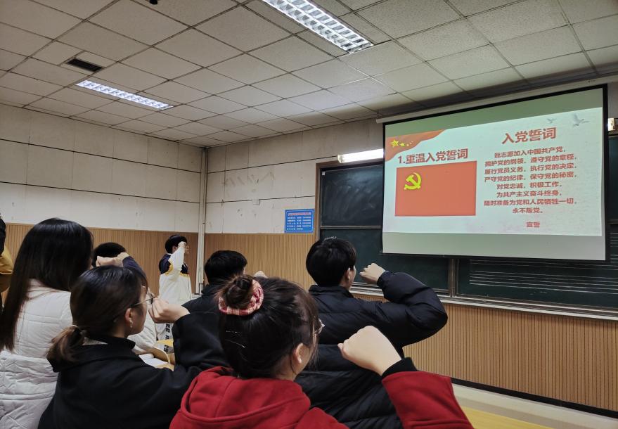 活动开始,全体学生重温入党誓词、集中交纳党费、诵读《中国共产党章程》、《党史》。