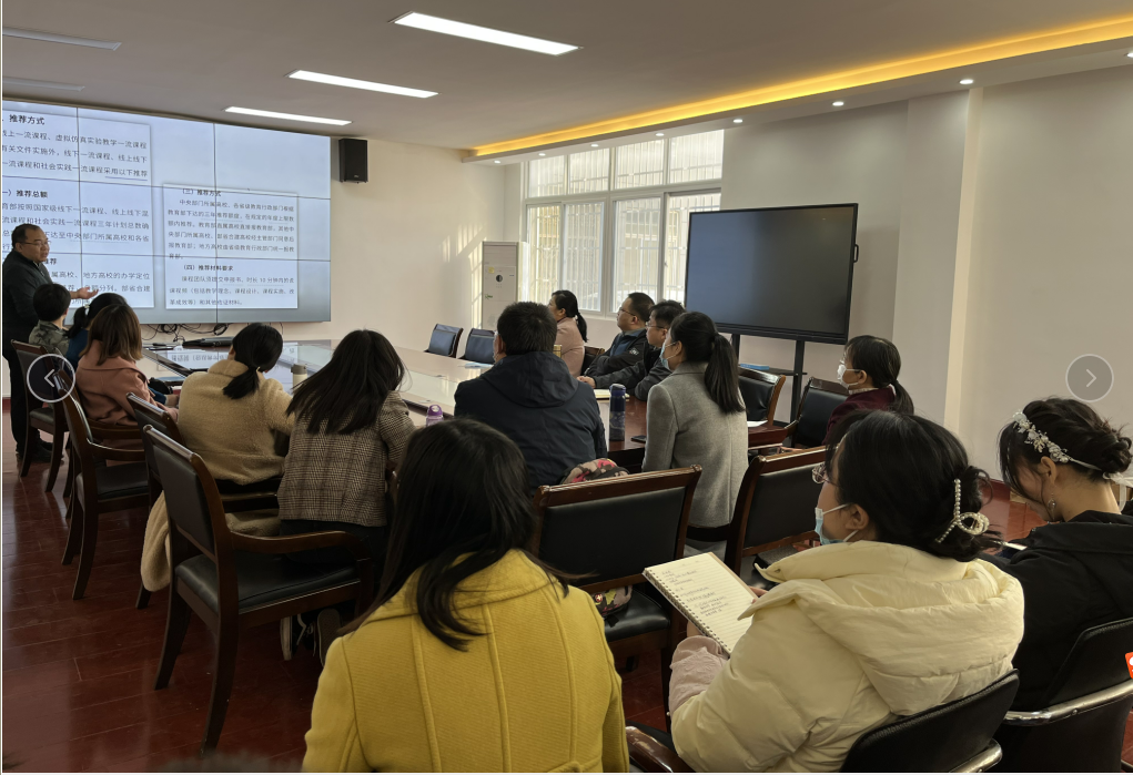 会上,魏李对标国家一流课程“双万计划”,聚焦提升教学能力,提高课堂教学质量,开展线上线下混合课程建设等方面进行了“金课”申报及评审政策的解读。