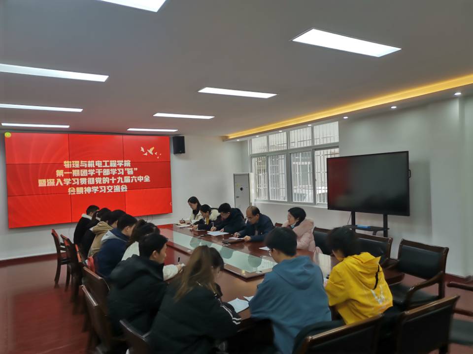 本网讯(通讯员 王亦昕 任欣)2021年12月21日中午,物理与机电工程学院(以下简称:物机学院)在学院会议室开展第一期团员干部学习“荟”暨深入学习贯彻党的十九届六中全会精神学习交流会。物机学院党委书记王志民、党委副书记陈扬、组织员张锐、学生第一党支部书记刘文君、学生第二党支部书记陈曦、学生党支部支委代表、团学组织干部代表、团支书代表、青年学生代表参加,任欣主持会议。