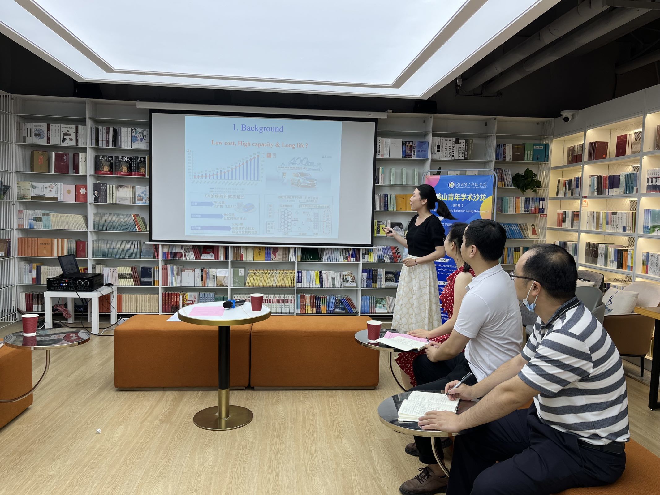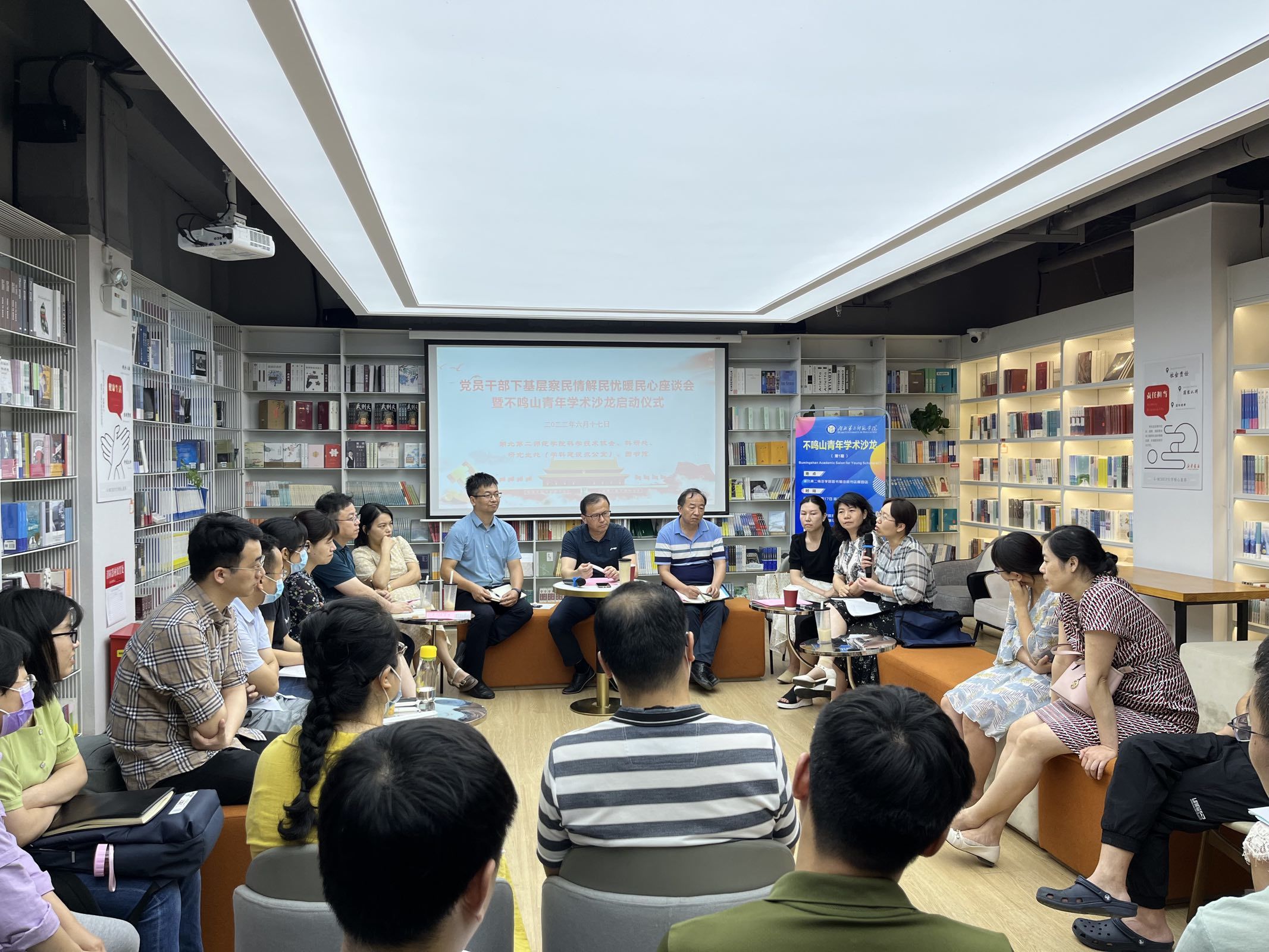 (通讯员 马云秀)2022年6月17日,在湖北第二师范学院科学技术协会、研究生处(学科建设办公室)、科研处的支持下,物理机电工程学院、化学与生命科学学院、建筑与材料工程学院共同组织了第一期“不鸣山青年学术沙龙(Bumingshan Academic Salon for Young Scholars(I))”,邀请了三位青年学者在图书馆倍阅书店樱园店做学术报告。