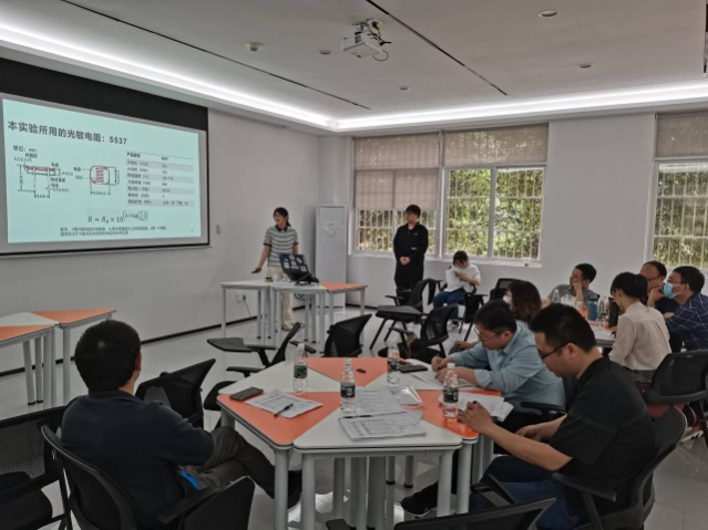 在预赛现场,各参赛小组按照命题类和自选类依次进行5-8分钟的PPT讲解和实验装置展示,讲课类是15分钟的课堂展示。本次预赛从14日上午10点正式开始,一直持续到下午5点,评委老师们对每支队伍进行了细致评判并提出了建设性改进意见和建议,为我校各参赛作品的进一步完善指明方向,为提高我校参赛作品竞争力打下良好基础。