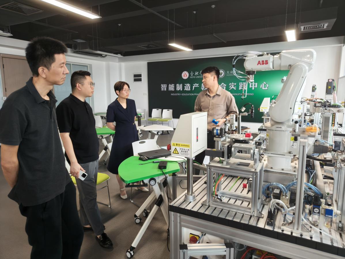 同日下午,李莎一行赴合肥学院、合肥学院智能制造产教融合实践中心进行调研交流和参观。合肥学院先进制造工程学院副院长胡国华、公共物理教学部主任方保龙、电子信息工程系主任张胜、智能制造工程系专业负责人张光洲、教师代表梅琳参与了本次交流活动。