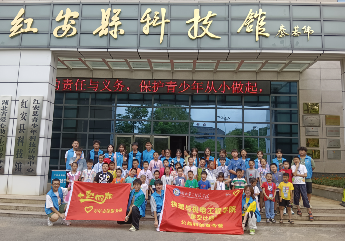 本网讯(通讯员 王亦昕)7月4日至7月11日,湖北第二师范学院“星空计划”公益科创营志愿服务队前往湖北省黄冈市红安县开展了为期一周的公益科普夏令营活动。本次夏令营活动结合物理与机电工程学院专业特色设计了系列科学、文化课程,致力于深入县域基层一线,培育科学理想、传承文化瑰宝、践行志愿服务精神。