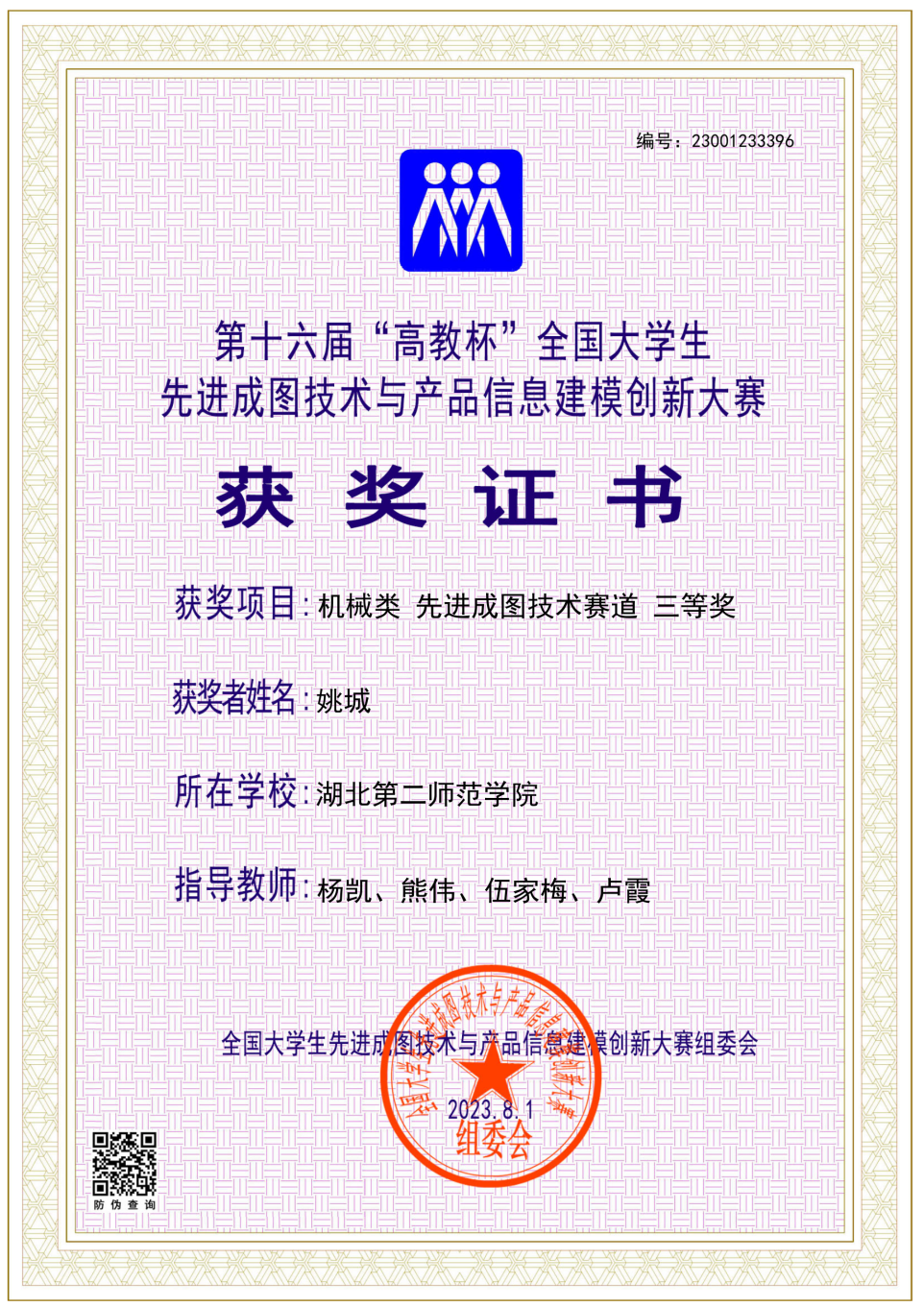 校网讯(通讯员 杨凯)近日,第十六届“高教杯”全国大学生先进成图技术与产品信息建模创新大赛总决赛在重庆交通大学科学城校区落下帷幕,我校物理与机电工程学院学子姚城获机械类先进成图技术赛道三等奖。