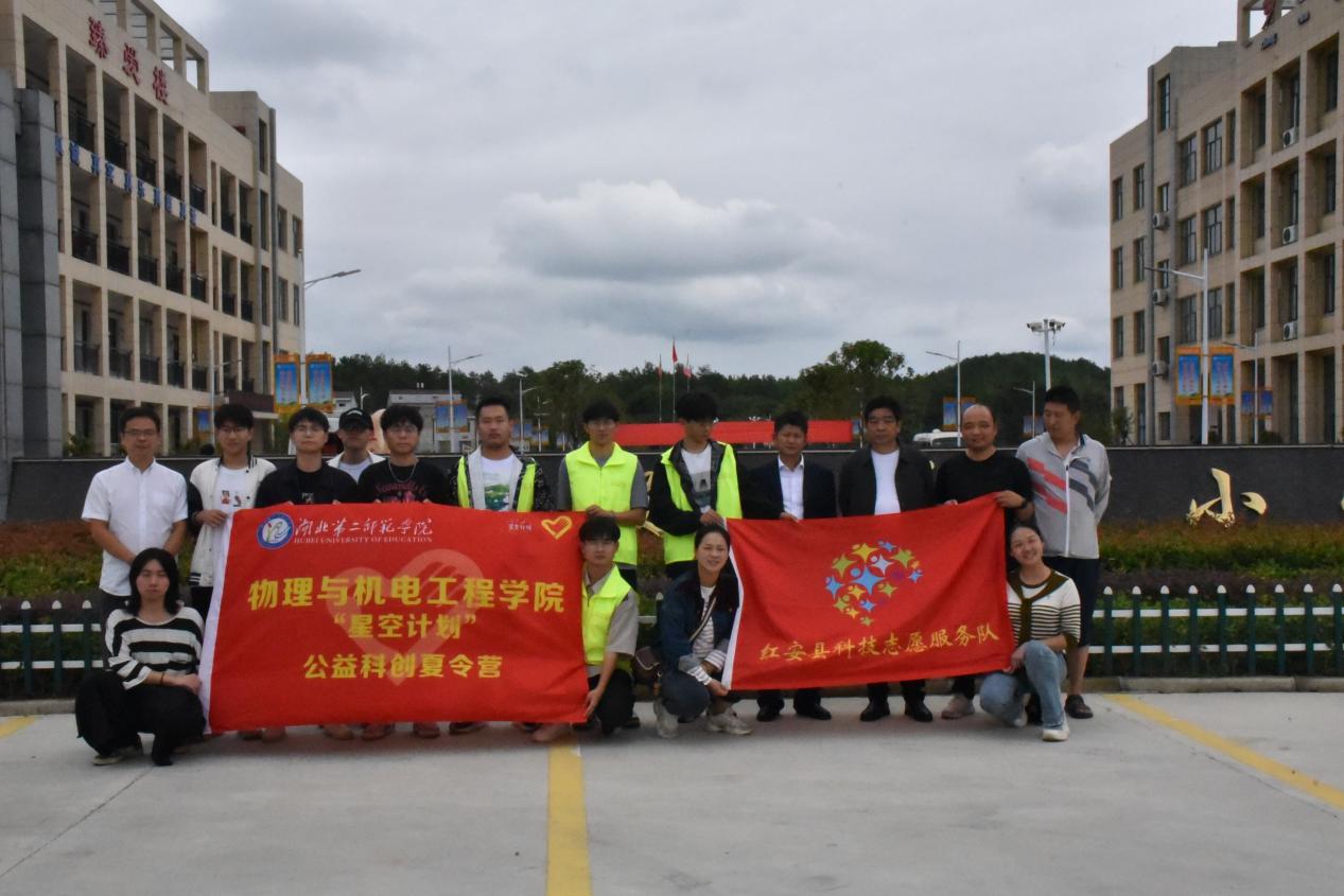 本网讯(通讯员 刘克圣 沈子颖)为激发学生对科学的兴趣,扩展学生的知识面。9月22日,我校物理与机电工程学院(以下称“物机学院”) “星空计划”公益科创营项目团队在指导老师谈伟伟、万振武的带领下,受邀前往红安县将军城小学开展红安县2023年全国科普日活动。