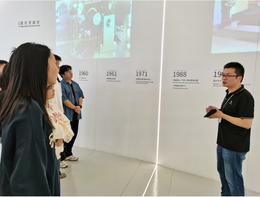 同学们在激光科技馆聆听工程师讲解我国激光科技发展历程