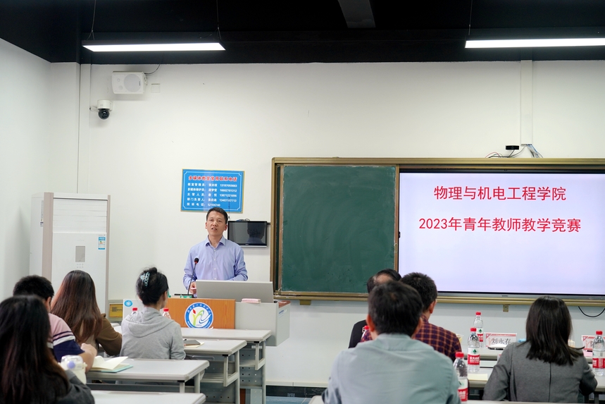 本网讯(通讯员 吉紫娟)为进一步加强物理与机电工程学院青年教师队伍建设,引导青年教师刻苦钻研教学基本功,提高其教学水平和业务素质,更好地承担起教书育人的重任,不断促进我院专业建设和人才培养质量的发展。学院教学办联合教学质量评估办特举办了2023年青年教师教学竞赛活动。从竞赛规则的制定、教学设计作品的征集到现场课堂教学的展示,历经半个月,终于圆满落下帷幕。