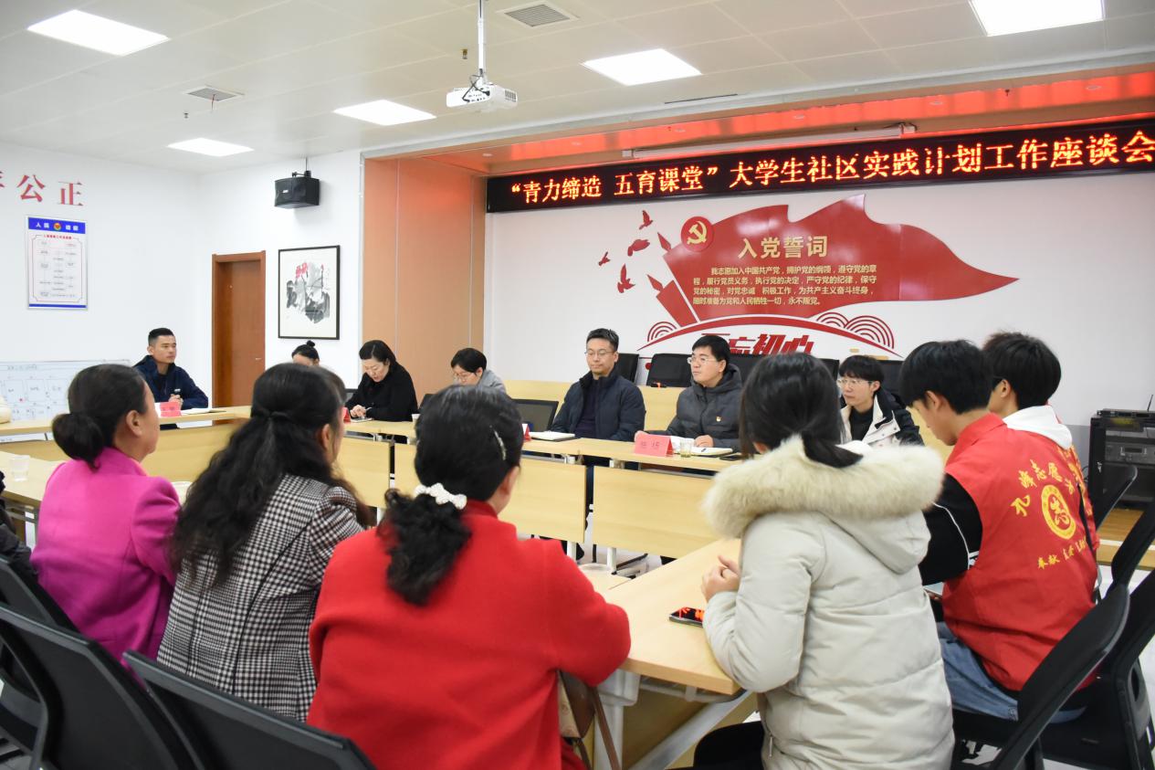 本网讯(通讯员 邓哲皓)为推进物理与机电工程学院(以下简称“物机学院”)“青力缔造 五育课堂”大学生社区实践计划,加强社区科普教育工作。11月14日下午,物机学院党委书记吴田、院长李莎、党委副书记陈杨、学工办主任冯媛媛、分团委书记任欣、青年志愿者协会指导老师郭家欣、志愿者代表赴武汉仁尚里社区开展工作座谈会,仁尚里社区书记王聪、社区工作人员和居民代表参会。王聪主持会议。