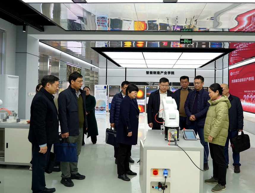 本网讯(本网讯 邓陕丽)11月17日下午,湖北省知识产权局党组书记、局长刘治田一行在物理与机电工程学院智能制造产业学院、先进功能材料研究所等实地走访调研,校党委书记杨鲜兰、副校长田恒平陪同调研。