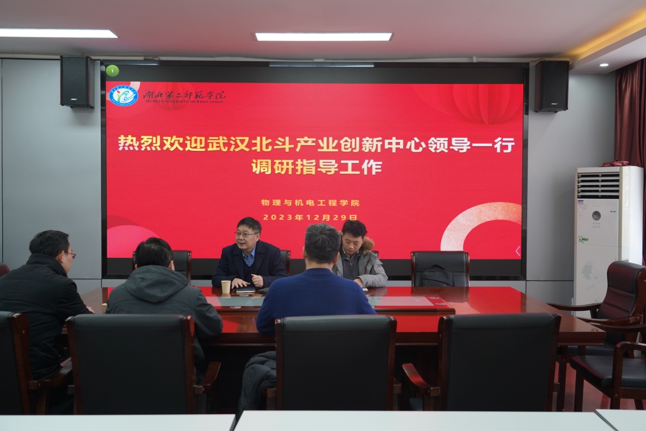 本网讯(通讯员 谈伟伟)为充分发挥湖北第二师范学院学科优势和武汉北斗产业创新中心科创优势,推进产教融合,促进项目合作,2023年12月29日上午,湖北省北斗高端制造业创新中心副主任、北斗创飞(武汉)科技有限公司总经理黄斌一行到访湖北第二师范学院物理与机电工程学院。