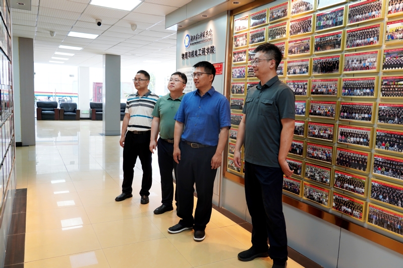 物理与机电工程学院党委书记、材料科学研究院院长吴田陪同李恒参观了物理与机电工程学院的文化墙、先进储能材料科学与技术实验室,深入了解学院的发展情况。