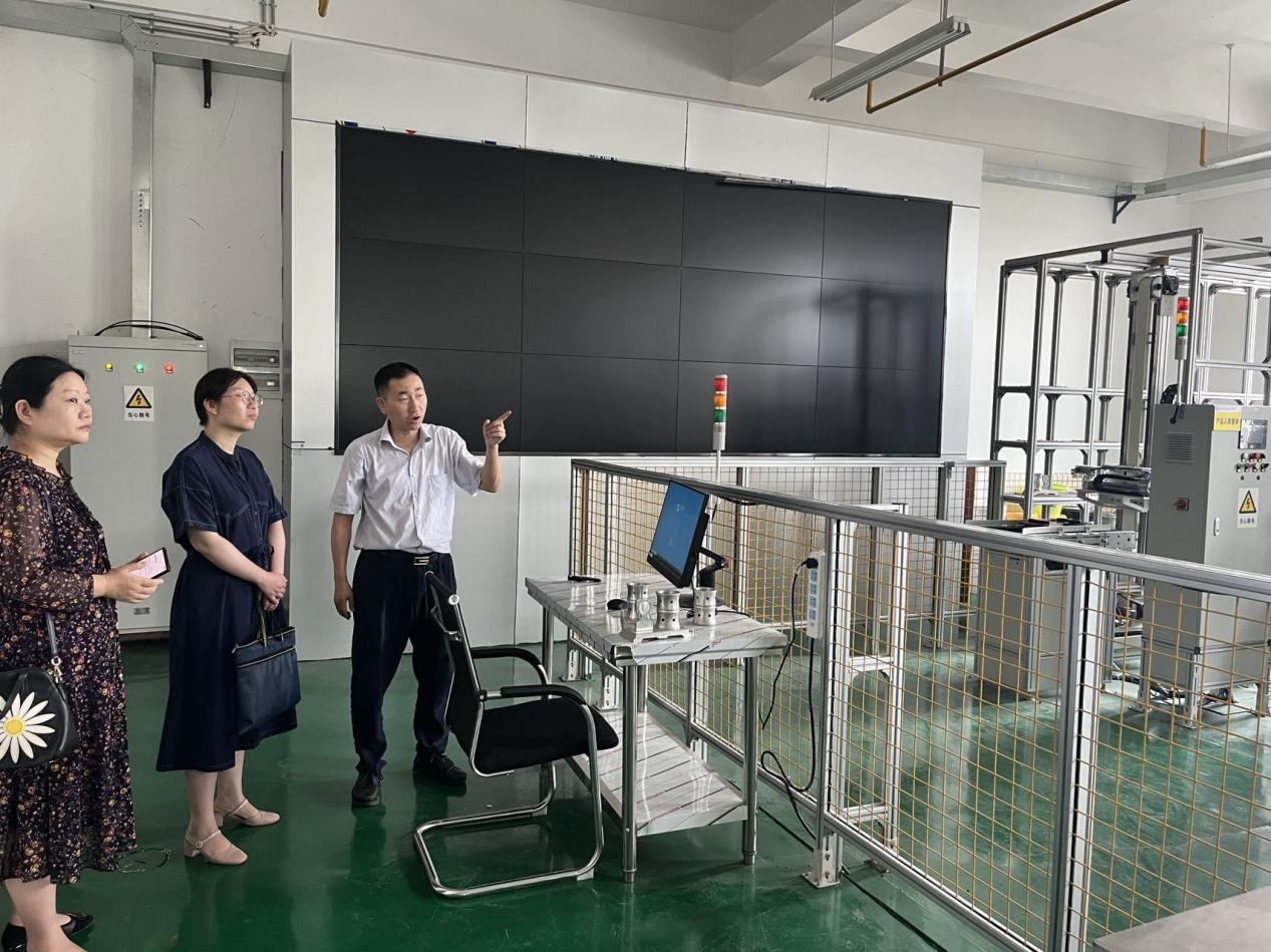 在实地参观环节,李莎一行深入湖北工业大学智能制造产业学院,了解产业学院教学设备和科研设施,以及其在教学、科研、人才培养中的实际应用情况。