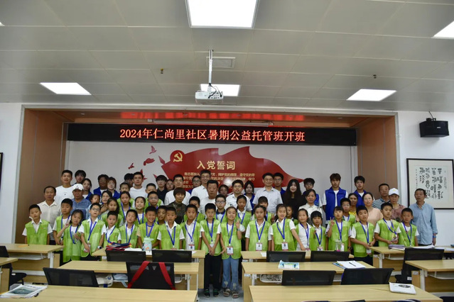 本网讯(通讯员 郭家欣)2024年7月8日上午,物理与机电工程"星空计划"公益科创营志愿服务队前往仁尚里社区,举办2024年仁尚里社区暑期公益志愿活动开营仪式。武汉东湖高新区九峰街道办事处党工委副书记、副主任兰添、物机学院党委书记吴田、党委副书记陈扬、仁尚里社区书记王聪、“星空计划”指导老师郭家欣、社区工作人员、志愿者代表、学员代表及家长等参加仪式。