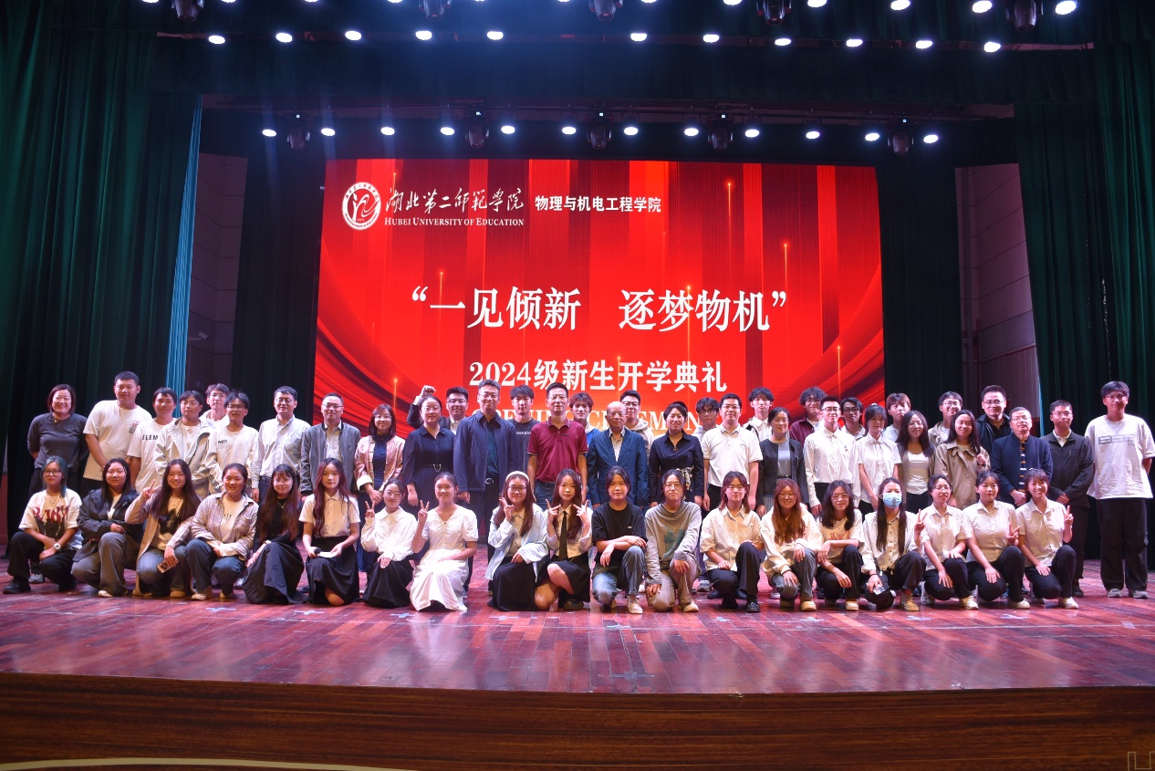 典礼最后,物机学院领导老师与同学们一同合影留念。至此,物机学院24级新生开学典礼圆满结束。(摄影 邓哲皓)