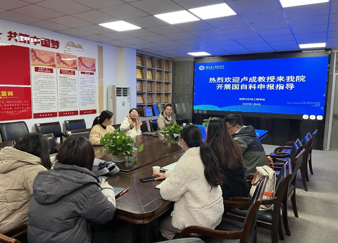 本网讯(通讯员 杨辉)1月8日上午,物理与机电工程学院组织召开2025年国家自然科学基金(以下简称“国自科”)申报书初稿第三轮指导推进会。会议邀请了中国地质大学(武汉)卢成教授针对理论物理、光电子器件等研究方向申报书进行专项指导,科研处副处长余良俊,物理与机电工程学院五位青年教师参加会议,院长李莎主持会议。
