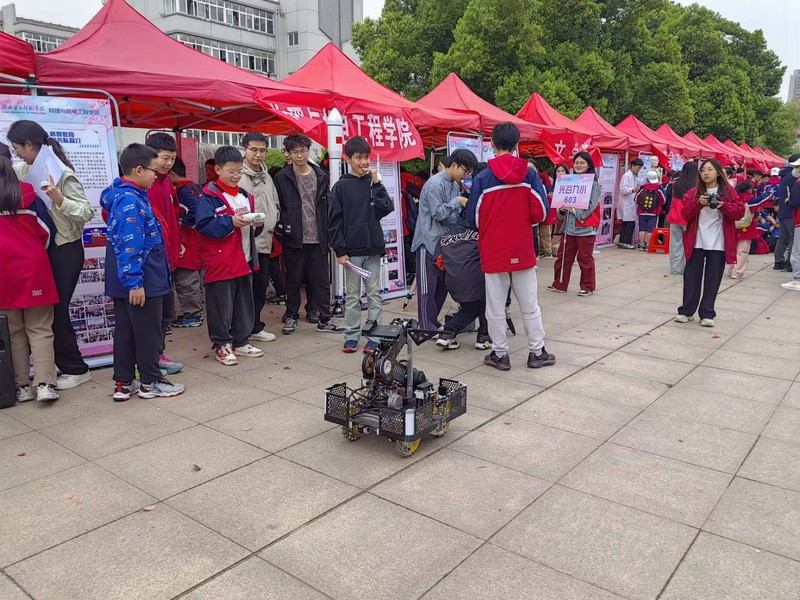 物理与机电工程学院以“顶天寻星解宇宙·立地智创启未来”为主题,精心策划天文与机器人科普展位及互动项目,并邀请北京爱宾果科技有限公司等助力活动。展位上,天文望远镜直指苍穹,工程机器人小车蓄势待发,琳琅满目的科普展品包括天球仪、月球仪、航天器模型及多种智能机器人,吸引了众多中小学生驻足体验。