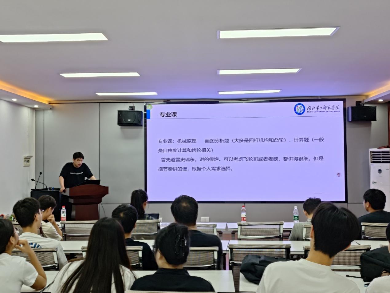 本网讯(通讯员 宋林灿)2025年5月8日,物理与机电工程学院机械电子工程专业在学院会议室举办了考研经验分享暨启动大会。会议邀请2022级机械电子工程专业班主任翟建波、卢霞,系主任谭永丽,专业负责人曹秀英,6位2021级成功考取研究生的学长学姐,以及2022级预考研学生参加。2022级机械电子工程1班学习委员雷涵文主持会议。