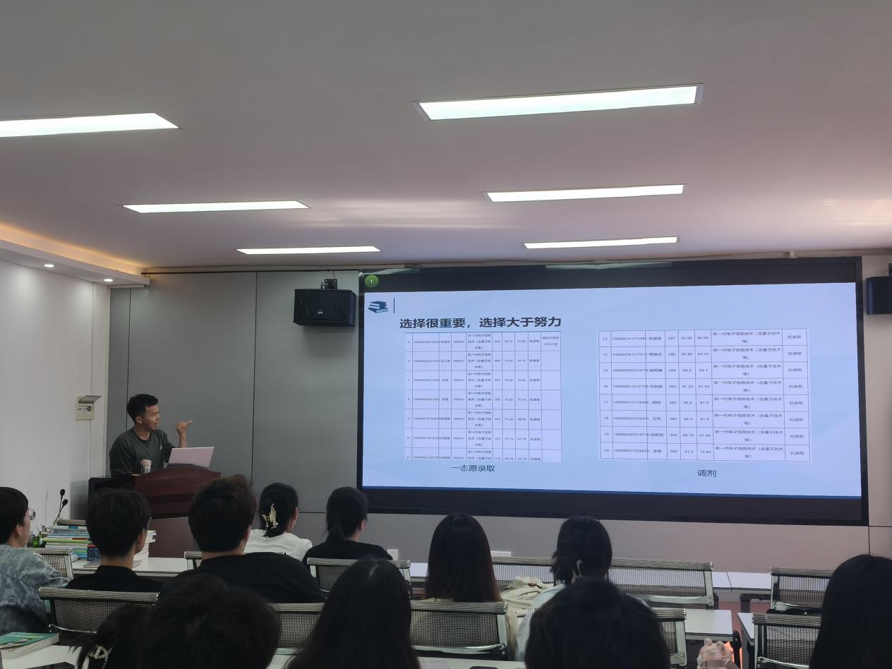 本网讯(通讯员 侯嘉慧 王怀兴)为帮助2026届备考研究生考试的同学明确方向、掌握方法、增强信心,物理与机电工程学院光学与电子信息系于2025年4月28日在学院会议室举办了第十六届电子信息科学与技术专业考研经验交流会。本次交流会邀请了多位2025届考研成功的优秀校友分享经验,吸引了众多2026届备考同学积极参与,现场气氛热烈,互动频繁。