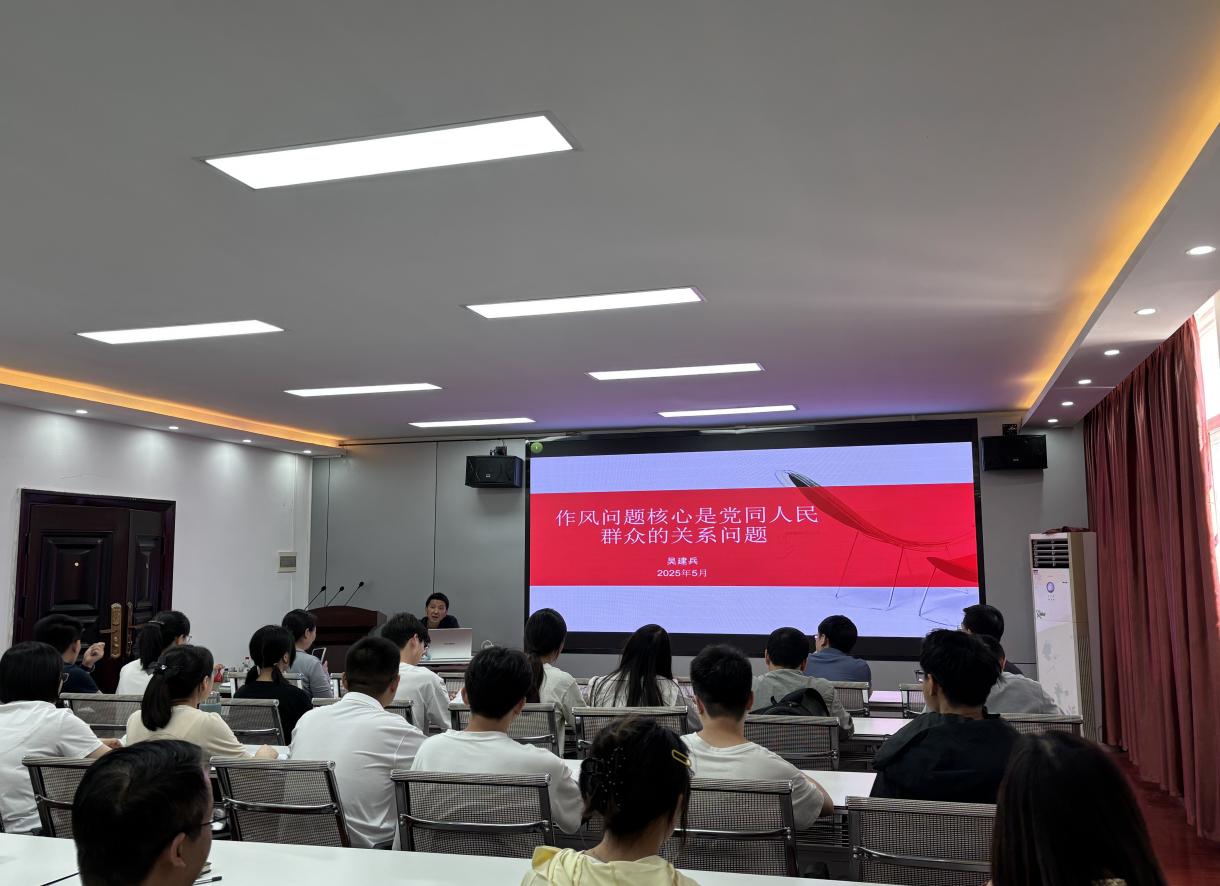 党课上,吴建兵结合党史和实际案例,深入剖析作风问题的本质。他指出,中央八项规定是“改进工作作风、密切联系群众”的八项规定,党的作风关系党的形象,更关系人心向背。党员干部要牢固树立群众观点,坚决反对形式主义、官僚主义,把群众满意作为检验工作的根本标准。他强调,作风问题的本质是党群关系问题,党员干部必须始终站稳人民立场,以中央八项规定为标尺,进一步强化宗旨意识,立足岗位办实事,在服务师生中锤炼党性,为推进学校和学院高质量发展贡献力量。