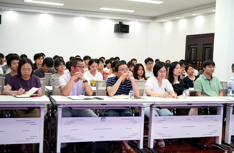 李莎对潘峰教授到来表示欢迎,并向师生简要介绍了潘峰教授的基本情况。潘峰教授首先介绍了材料的基本概念,同时描述了国内外的研究进展。通过结合材料当前的研究热点,系统分析了国内外新材料的发展趋势、现状和需求,同时鼓励学生了解、从事材料相关工作,投身我国材料科学发展。