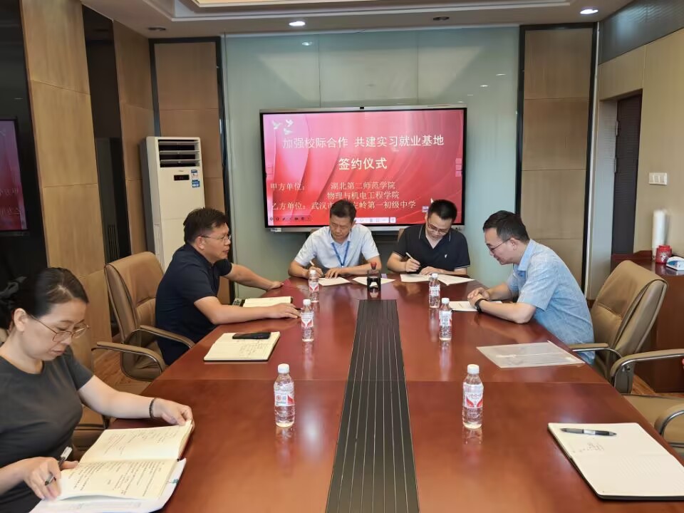 本网讯(通讯员 谈伟伟)为加强物理与天文系与光谷片区中小学校的合作与交流,同时拓宽本系的实习基地校。6月25日,物理与机电工程学院教学副院长张祖满、物理与天文系系主任谈伟伟一行前往武汉市左岭第一初级中学进行考察,并与其校长袁新军及书记彭新海就实习基地的建设及学生就业和校校合作展开了深入交流。
