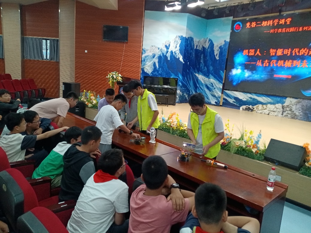 为将优质科普资源辐射至更广泛的青少年群体,2025年9月26日,我校STEM科技教育中心的科普团队走进武汉市光谷第二初级中学,为中学生们带来了一场别开生面的机器人主题科普盛宴。