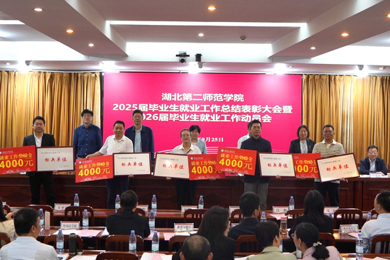 会上,学校发布2025级新生招录数据与2025届毕业生就业数据,并对前期招生就业工作开展情况进行总结。招生就业处处长刘儒国宣读《2025届毕业生就业工作先进集体及个人专项表彰决定》,校领导为就业工作先进集体与先进个人颁奖。其中,物机学院获评2025届毕业生就业工作标兵单位,2025届毕业生辅导员刘方芳、郭家欣、廖雨彤获评就业工作先进个人。