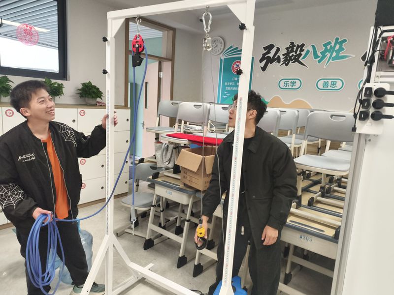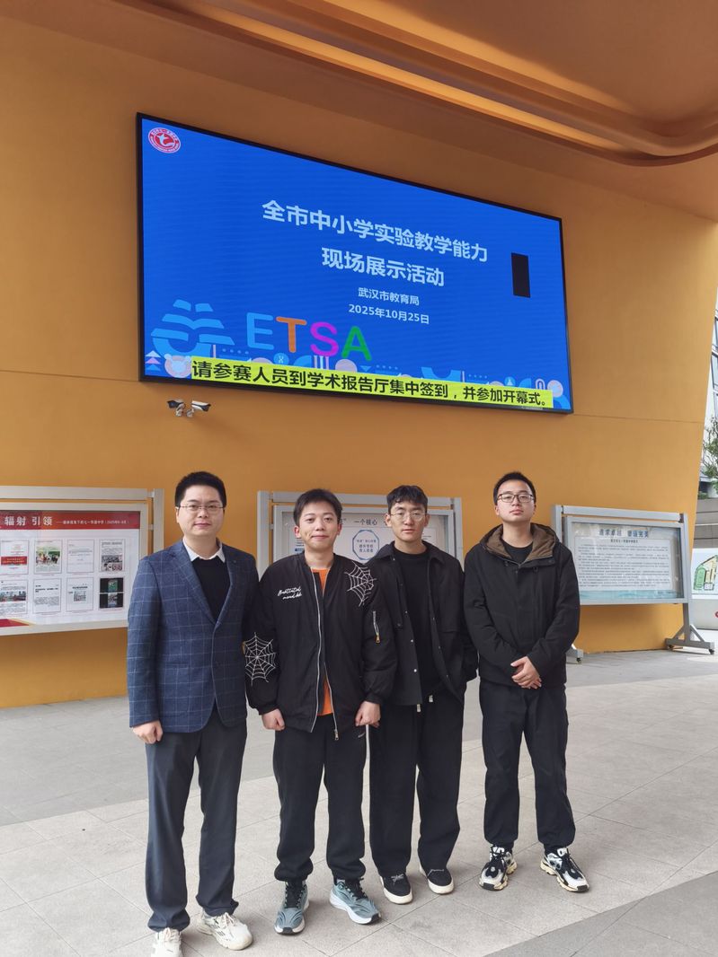 本网讯(通讯员 喻宁)2025年10月25日,物理与机电工程学院(以下简称“物机学院”)三名大四物理学(师范)专业学生,在学校统一安排下,前往光谷第四初级中学(以下简称“光谷四初”)开展教育实习。实习伊始,他们便迎来了一次宝贵的实践锻炼机会——在光谷四初指导老师的带领下,共同参与并全程协助了武汉市中小学实验教学展示与交流活动。