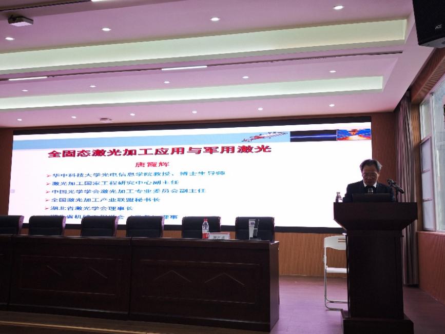 李莎对唐霞辉教授到来表示欢迎,并向师生简要介绍了唐霞辉教授的基本情况。唐霞辉教授首先介绍了激光的基本概念,同时描述了国内外的研究进展。通过结合当前激光应用的研究热点,系统分析了国内外激光的发展趋势、现状和需求,同时鼓励学生了解、从事光电相关工作,投身我国光电事业发展。