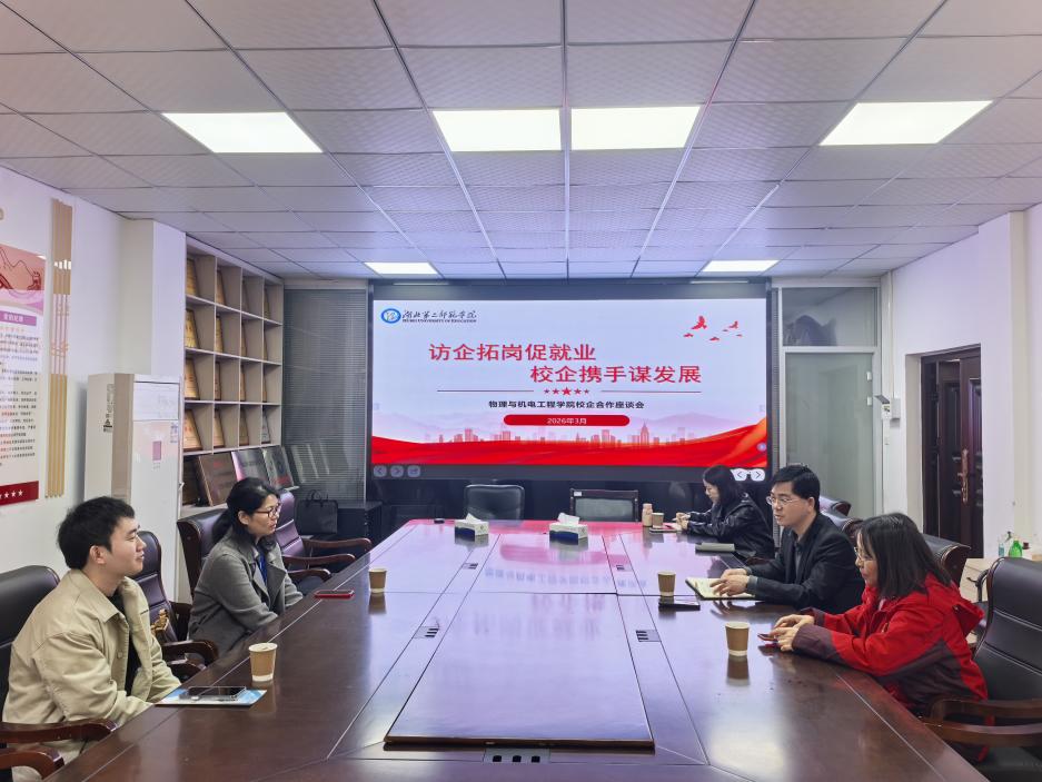 本网讯(通讯员 田明艳)为深化校企协同育人机制,拓宽毕业生就业渠道,精准对接企业用人需求,3月27日,物理与机电工程学院(以下简称“物机学院”)成功举办“访企拓岗促就业,校企携手谋发展”校企合作座谈会。武汉安扬激光技术股份有限公司、武汉友阳光电有限公司企业代表受邀出席,学院党委副书记陈扬主持会议。